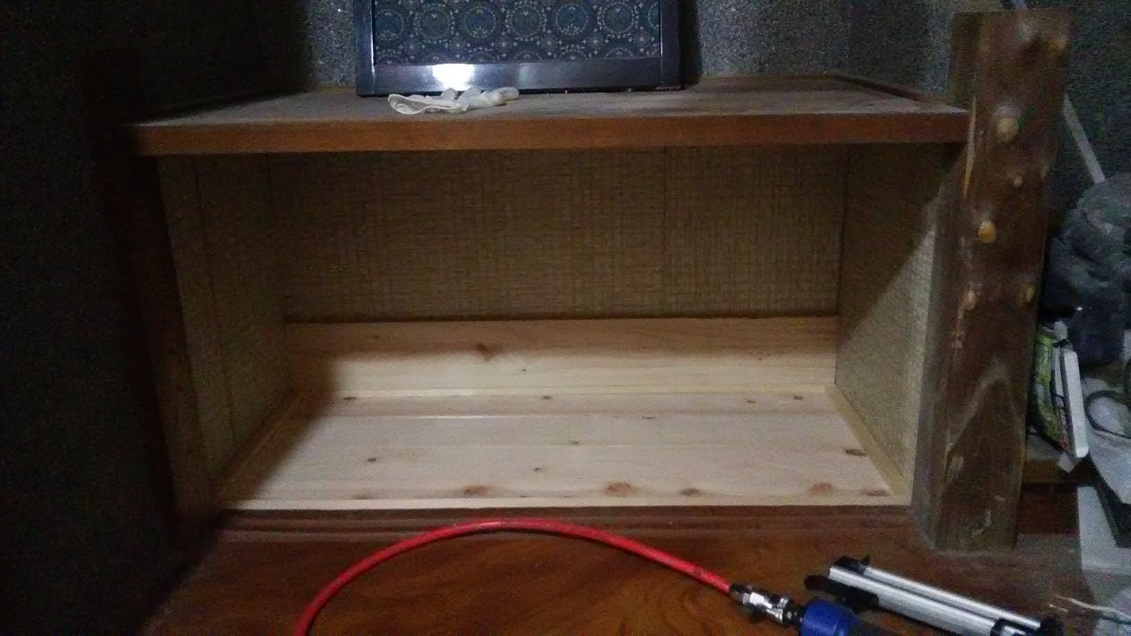 間にも段を入れるし、実は一番上の板は張り付けてなく、乗ってるだけなので、