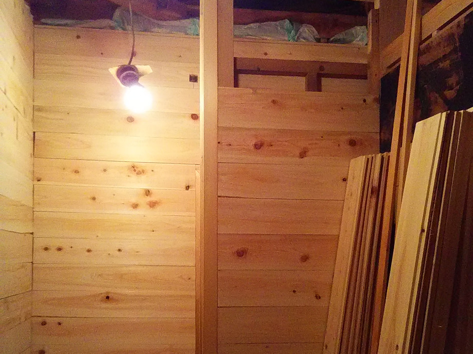 物置部屋から廊下側そ見たところの壁もできてきました。