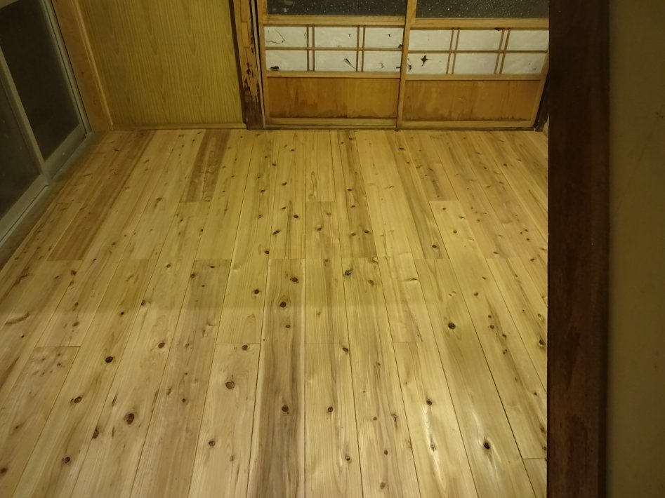 もともとの床下の大引や根太を残して高さ合わせのためだけに、新たに角材を追加したりしてました。