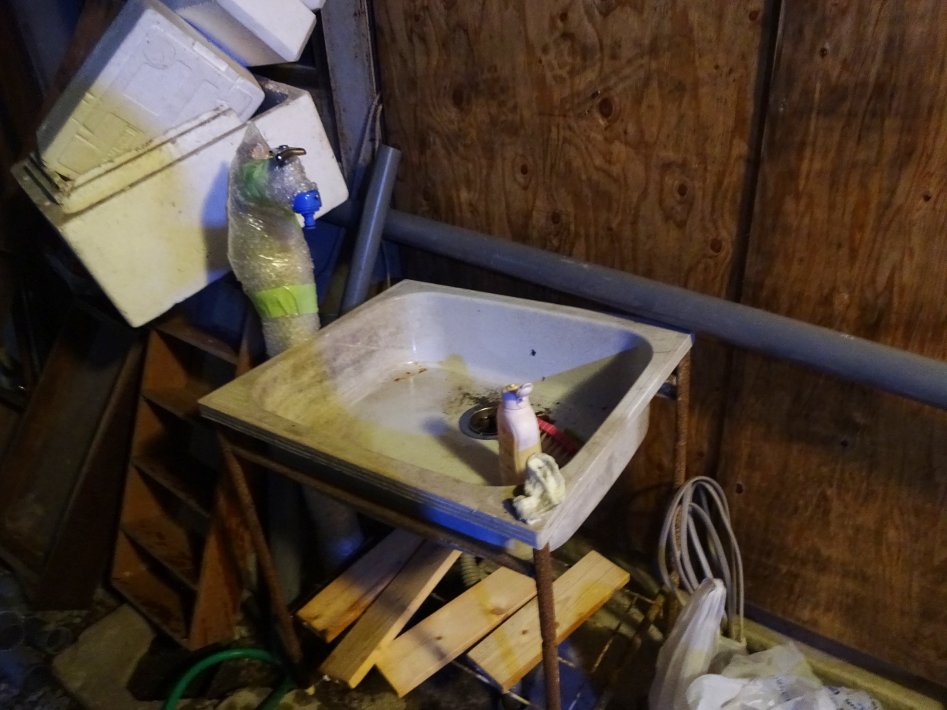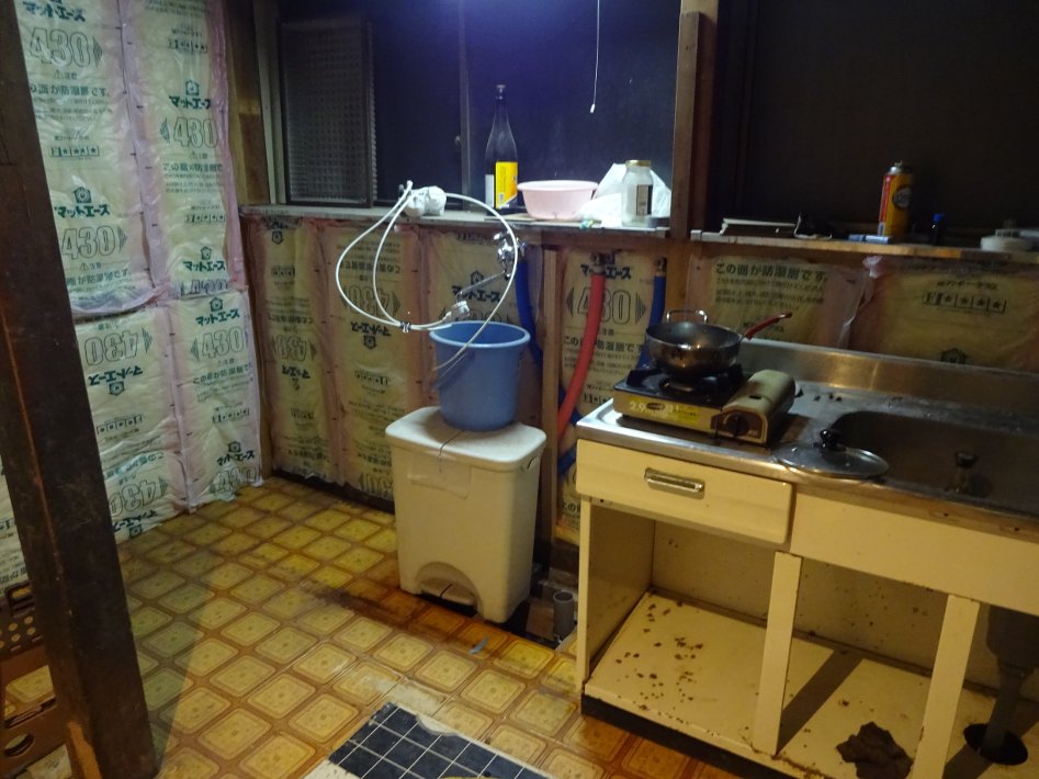 ※ 排水がつながってないので、流しに水を流すと床が水浸しになります