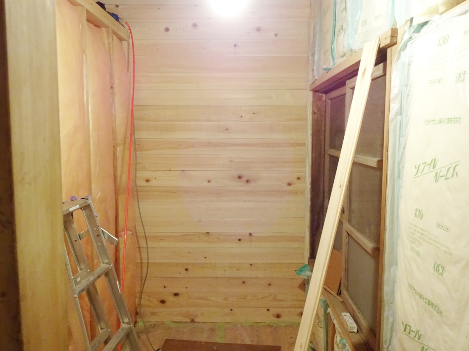 安い荒材利用の壁であっても(でもこだわって国産ヒノキ)、隙間が空いてたら残念、ってことで、あいじゃくり加工を自分でしています。