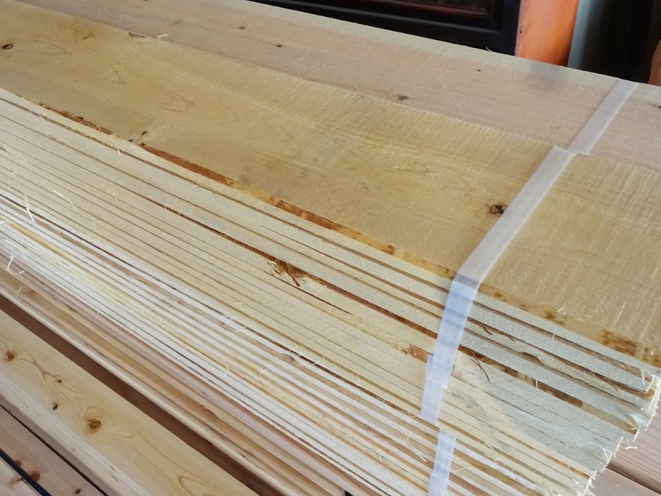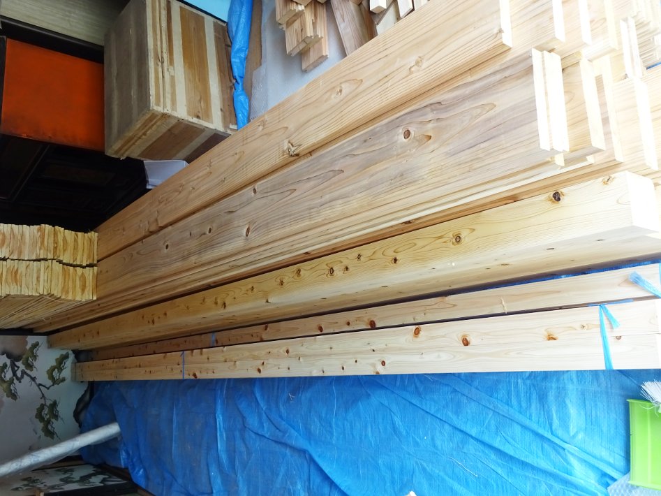 床板にする予定の破風板24mm(奥)と手前は桧の根太・大引