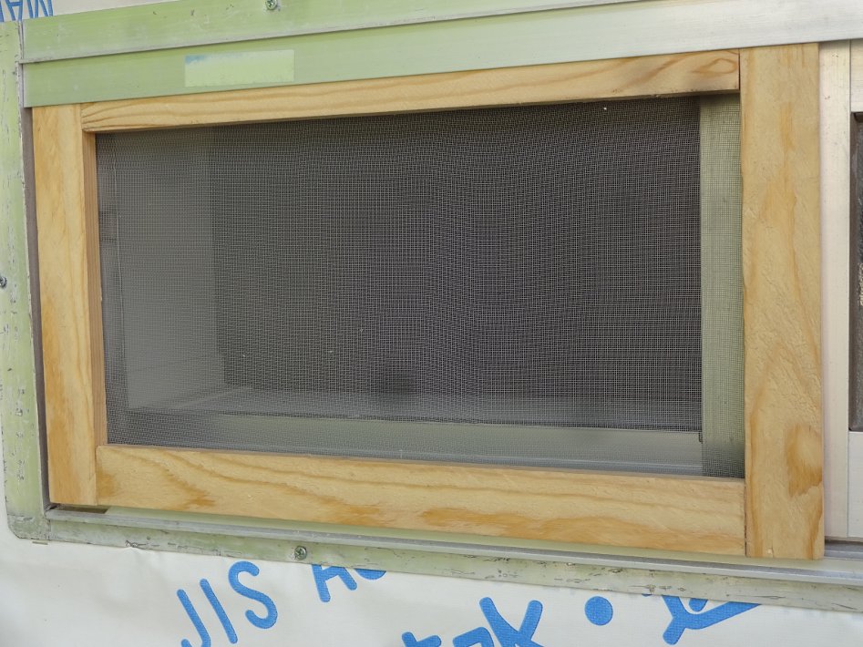 倉庫などに落ちていた網戸2枚も網を張りなおして、元々のが2箇所(ちょっと破れているので補正が必要)、自作も3枚つくって、購入したの1枚で、