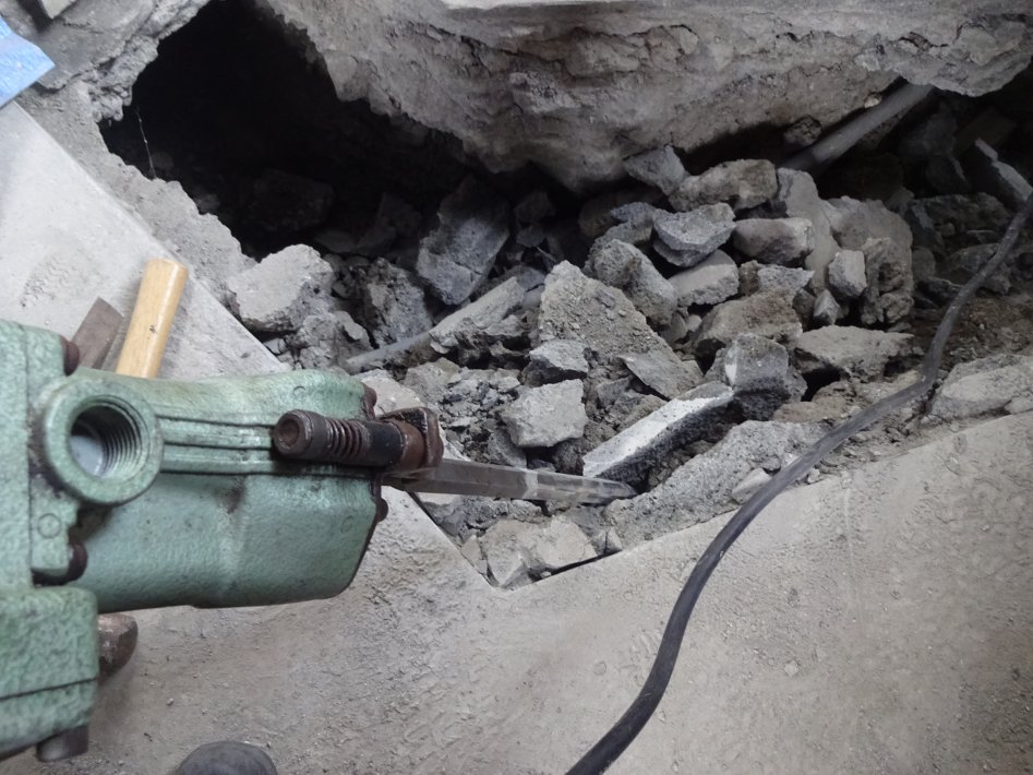 でも、端っこなど、難しそうなところは、手動のトンカチで叩いたりしてこわしたりもしています。
