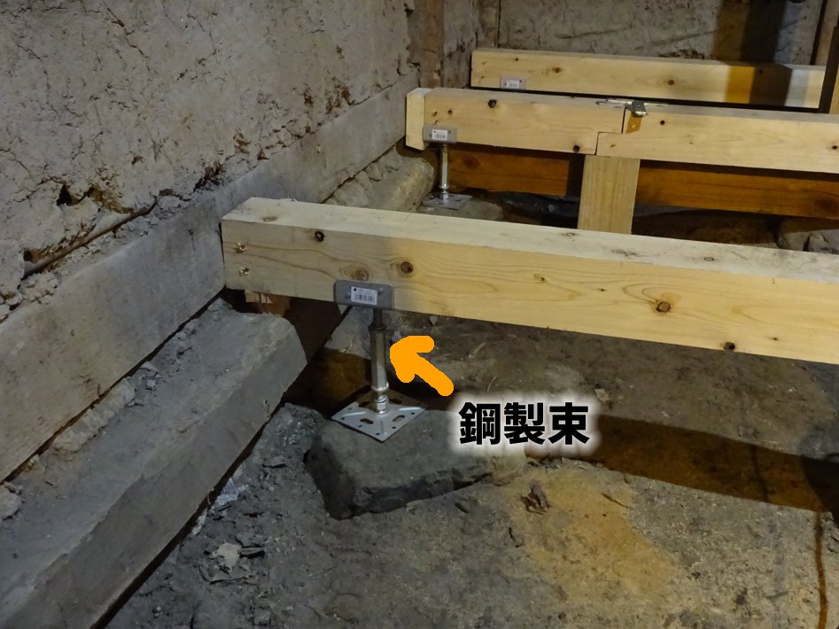 端は正確さをだすために、高さを調節しやすい鋼製束にしました。