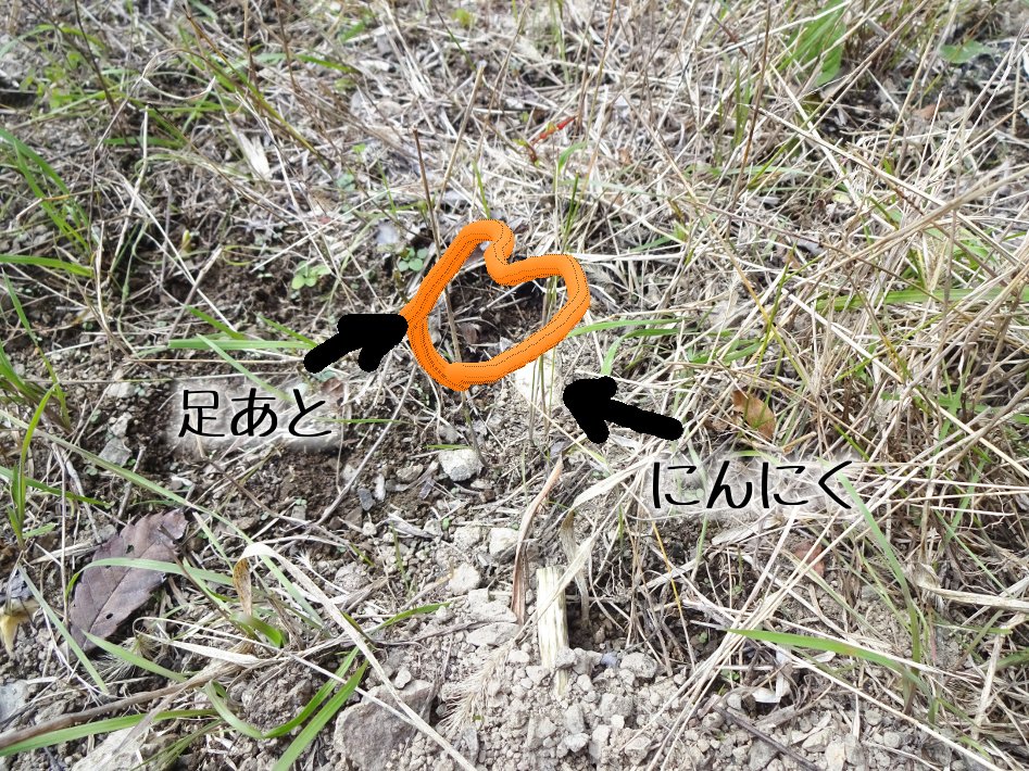 にんにく畑の方も、たまねぎ畑よりはマシですが足あとがありました。